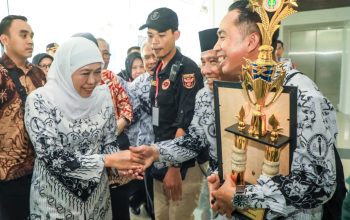 SURABAYA, 13 DESEMBER 2025 – Gubernur Jawa Timur Khofifah Indar Parawansa menerima penghargaan dari Kementerian Hukum RI atas keberhasilan terbentuknya 8.494 Pos Bantuan Hukum (Posbankum) Desa/Kelurahan di seluruh Jawa Timur.