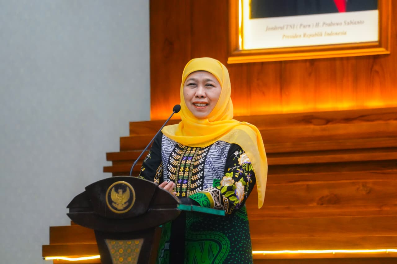 Gubernur Jawa Timur Khofifah Indar Parawansa secara resmi melepas Kafilah Jatim pada Seleksi Tilawatil Qur’an dan Hadis Tingkat Nasional (STQHN) XXVIII Tahun 2025 di Gedung Negara Grahadi Surabaya, Rabu (8/10).