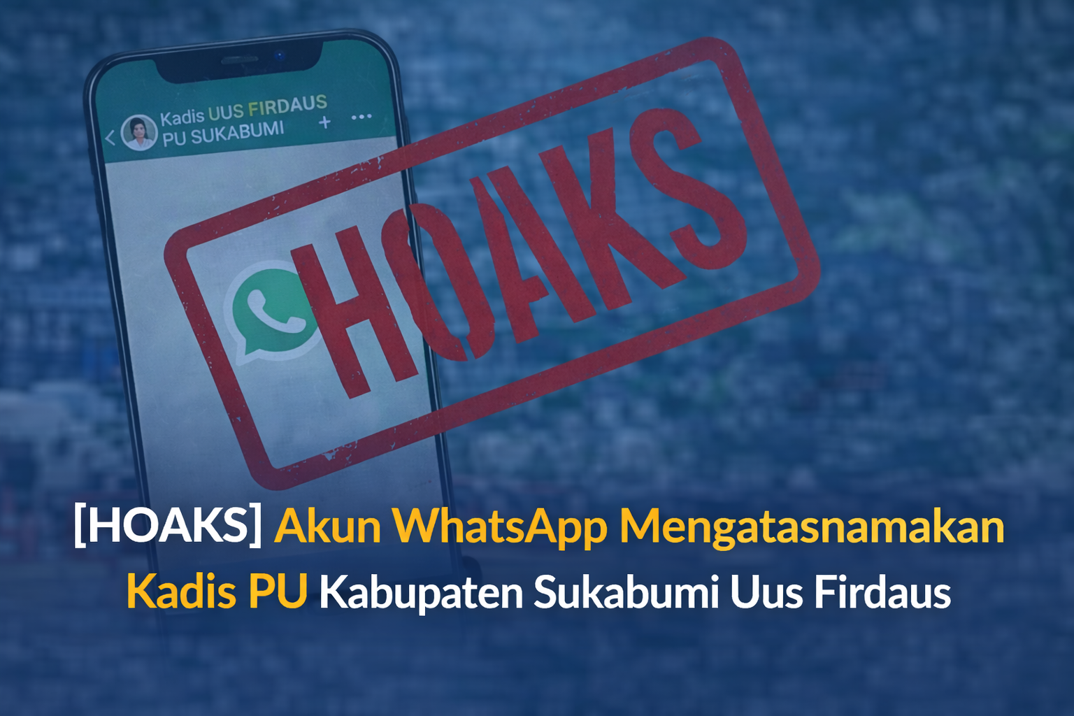 Akun WhatsApp yang mengatasnamakan Kepala Dinas PU Kabupaten Sukabumi dengan nomor 0812-9922-4955 adalah HOAKS dan PENIPUAN.