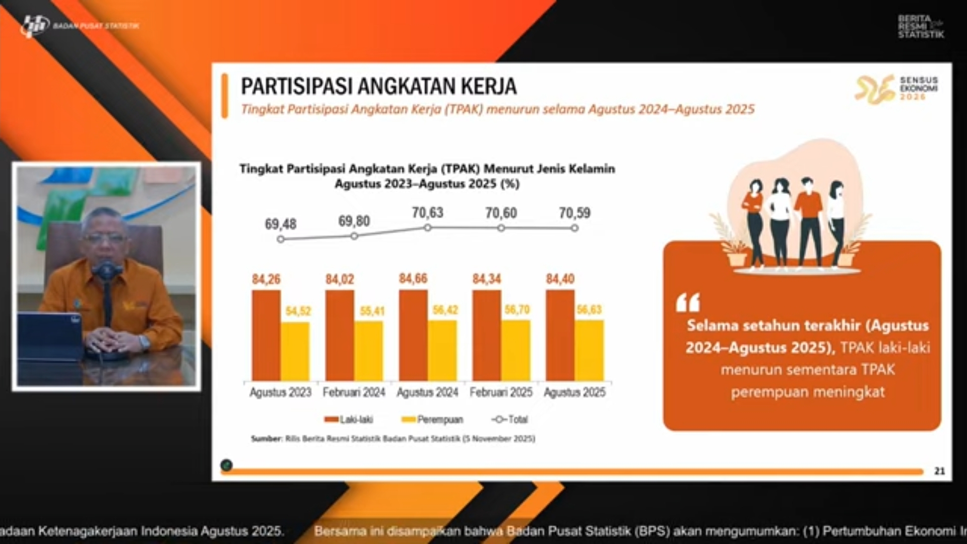 Deputi Bidang Neraca dan Analisis Statistik BPS Moh. Edy Mahmud saat konferensi pers Rabu (5/11/2025) mengatakan pertumbuhan ekonomi Indonesia pada periode ini salah satunya didorong oleh konsumsi masyarakat yang tetap terjaga.