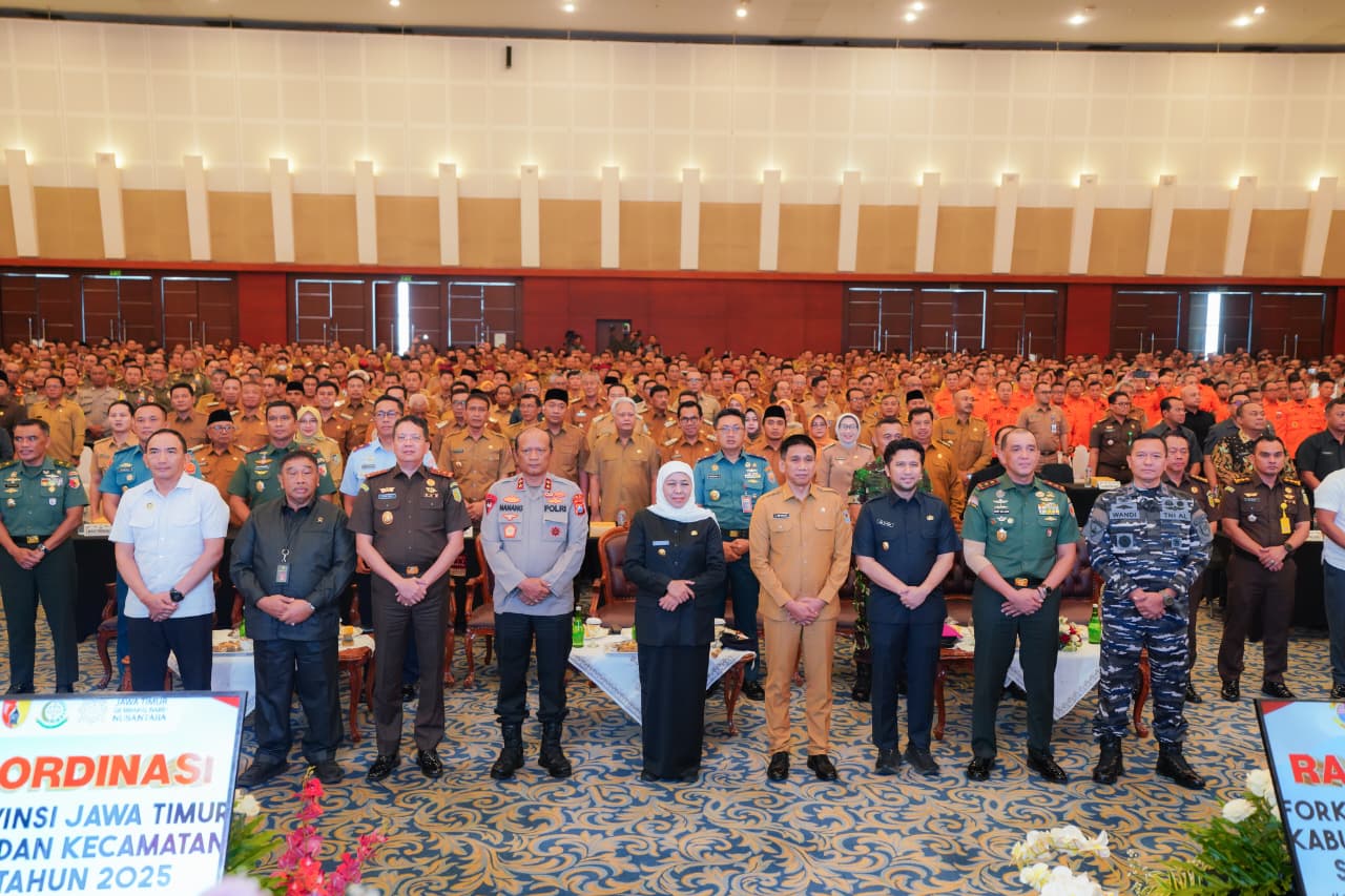 Gubernur Jawa Timur Khofifah Indar Parawansa memimpin Rapat Koordinasi (Rakor) Forkopimda Provinsi, Forkopimda Kabupaten/Kota, dan Forkopimcam se-Jawa Timur Tahun 2025 di Grand City Convex Surabaya, Selasa (4/11).