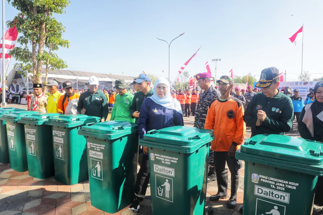 "World Cleanup Day 2025, itu berarti Hari Bersih-bersih Sedunia. Sejalan dengan target RPJMN bagaimana di tahun 2029 nanti, Indonesia sudah menuju bersih sampah. Maka tahun 2029 diharapkan 100% sampah sudah harus terkelola," kata Gubernur Khofifah.