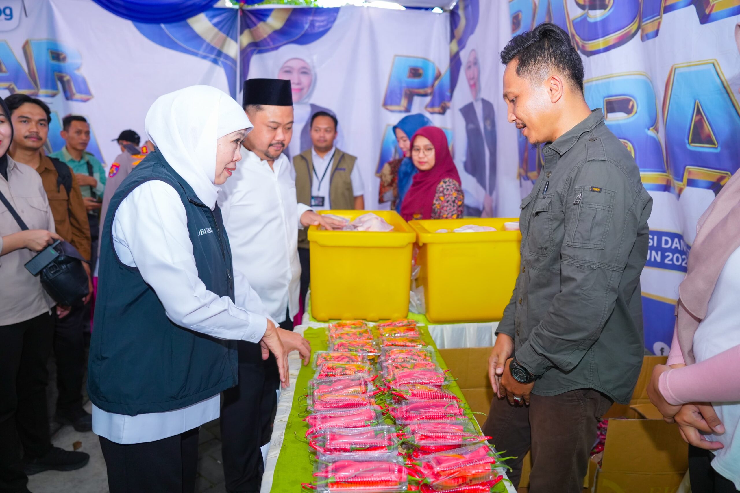 GRESIK , 15 MARET 2026 – Gubernur Jawa Timur Khofifah Indar Parawansa kembali menggelar pasar murah di Halaman Pudak Gallery, Kabupaten Gresik, Jumat (13/3), sebagai bagian dari upaya pengendalian inflasi dan stabilisasi harga bahan pokok menjelang Idul Fitri 1447 H.