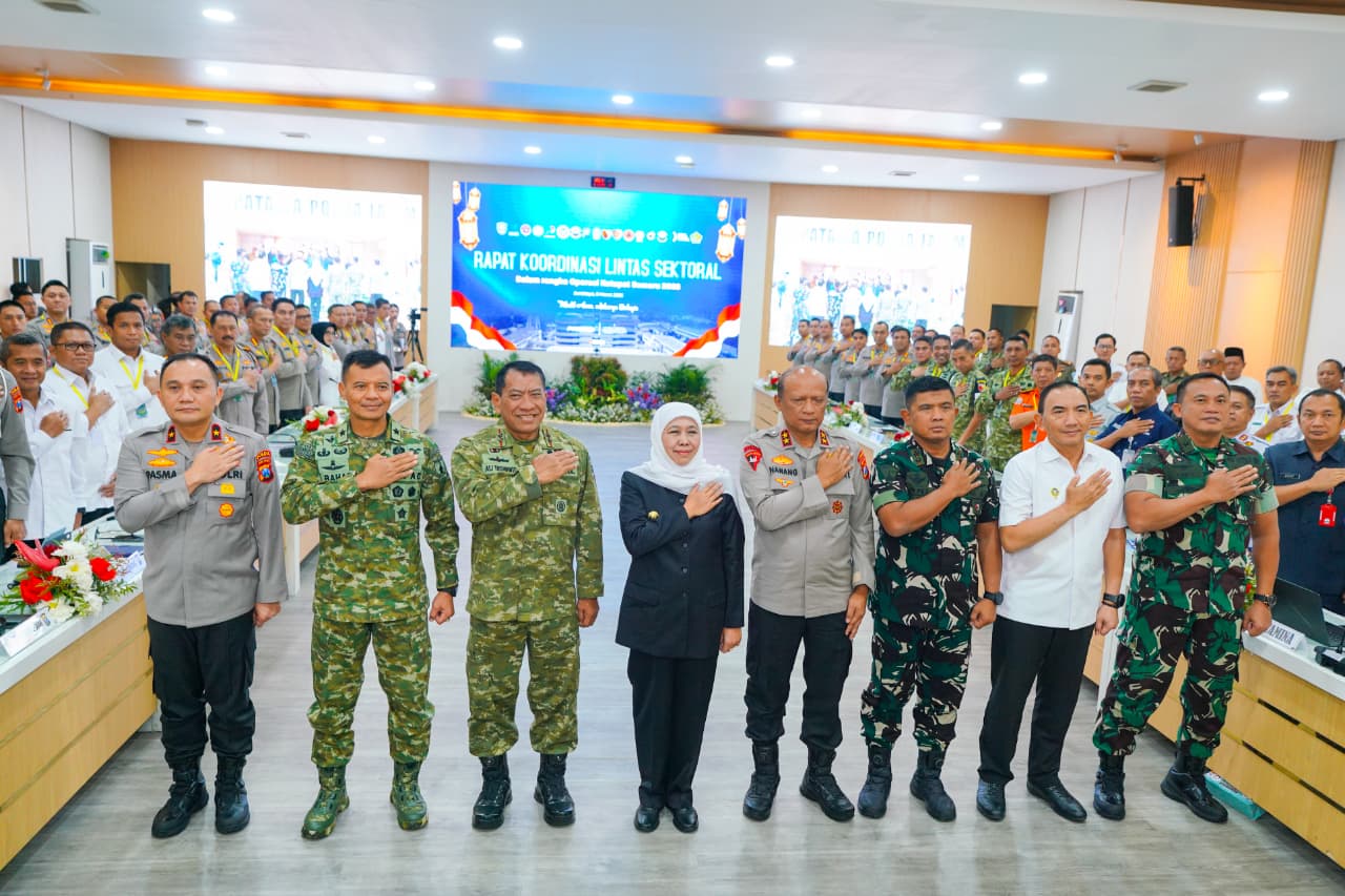 SURABAYA, 9 MARET 2026 – Gubernur Jawa Timur Khofifah Indar Parawansa menghadiri Rapat Koordinasi (Rakor) Lintas Sektoral dalam rangka Operasi Ketupat Semeru 2026 di Rupatama Polda Jatim, Jl. A. Yani No. 116 Surabaya, Senin (9/3).