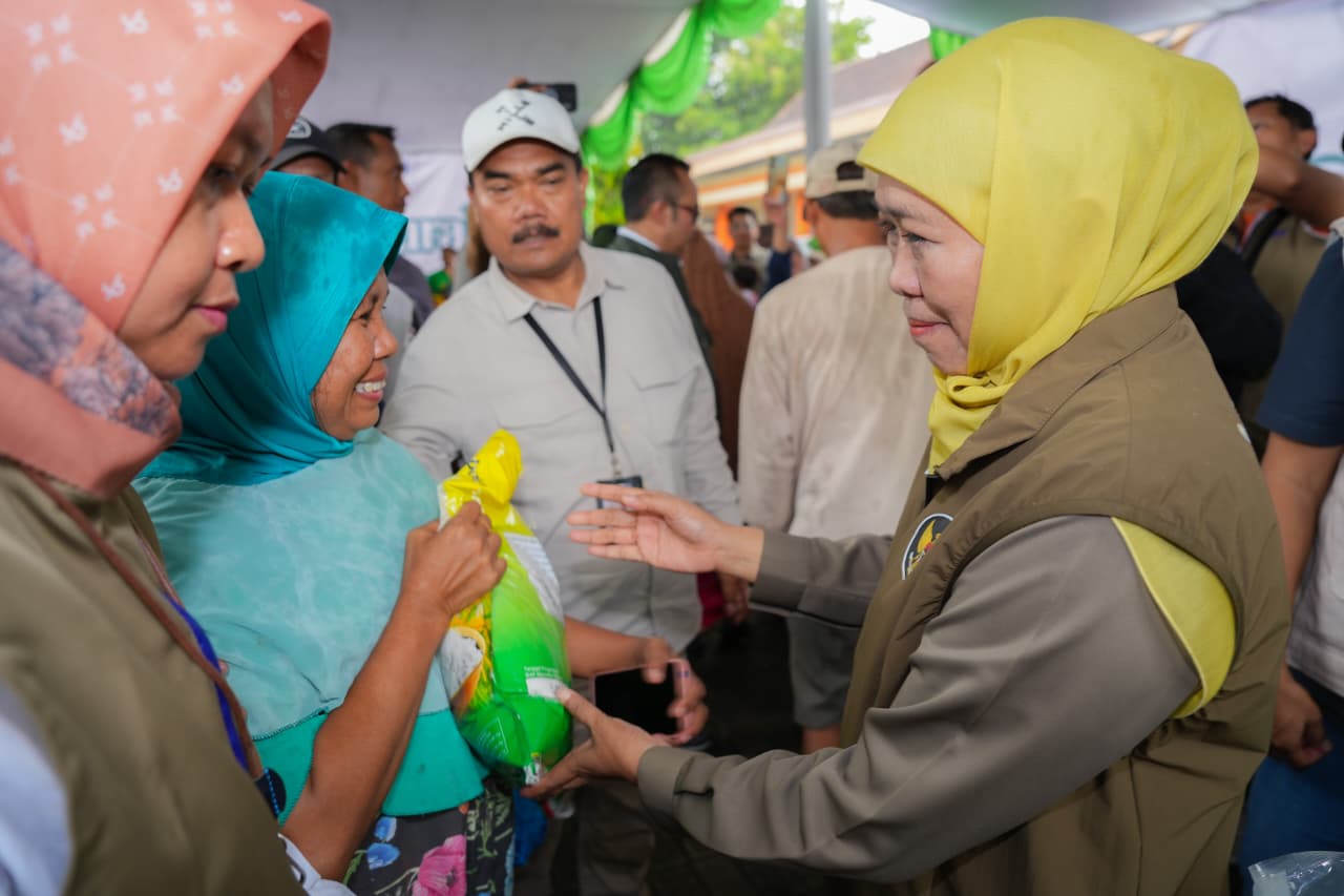LAMONGAN, 11 JANUARI 2026 – Gubernur Jawa Timur Khofifah Indar Parawansa menggelar pasar murah yang ke-2 di tahun 2026 di Halaman Kantor Kecamatan Deket, Kabupaten Lamongan, Sabtu (10/1).