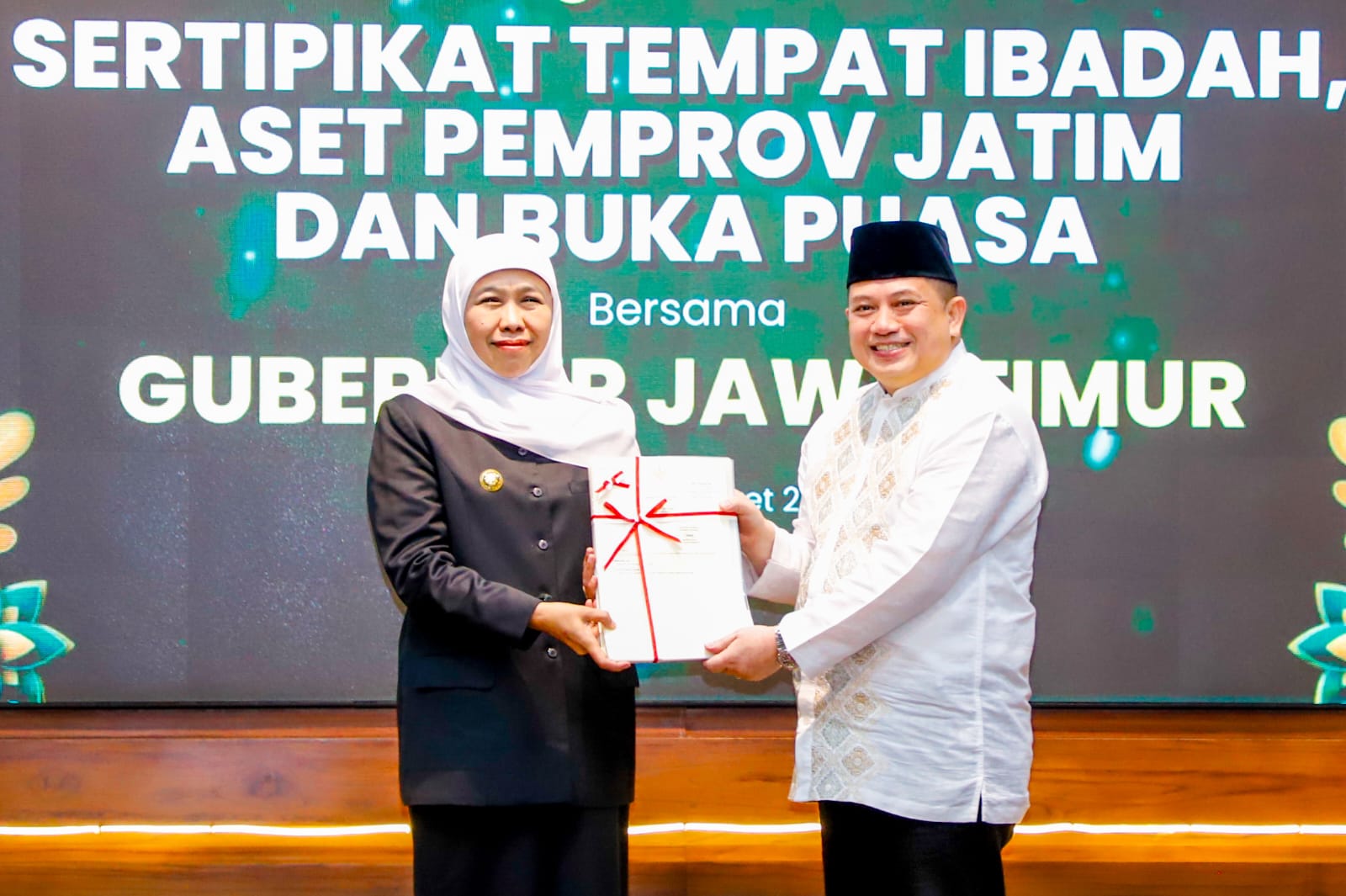 SURABAYA, 4 MARET 2026 – Gubernur Jawa Timur Khofifah Indar Parawansa bersama Kepala Kantor Wilayah Badan Pertanahan Nasional (BPN) Provinsi Jawa Timur Asep Heri menyerahkan sebanyak 444 sertipikat hak pakai atas nama Pemerintah Provinsi Jawa Timur dan tempat ibadah yang dilakukan di Gedung Negara Grahadi, Surabaya, Selasa (3/3).