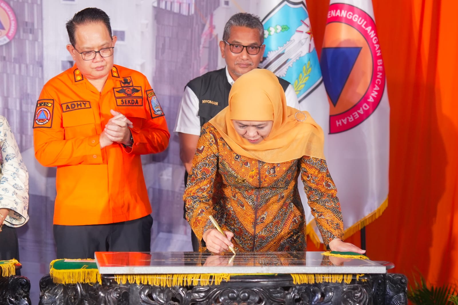 Peresmian ditandai dengan penandatanganan prasasti kedua bangunan sebagai simbol beroperasinya fasilitas baru yang diharapkan mampu memperkuat kapasitas kelembagaan BPBD dalam penanggulangan bencana di Jawa Timur.