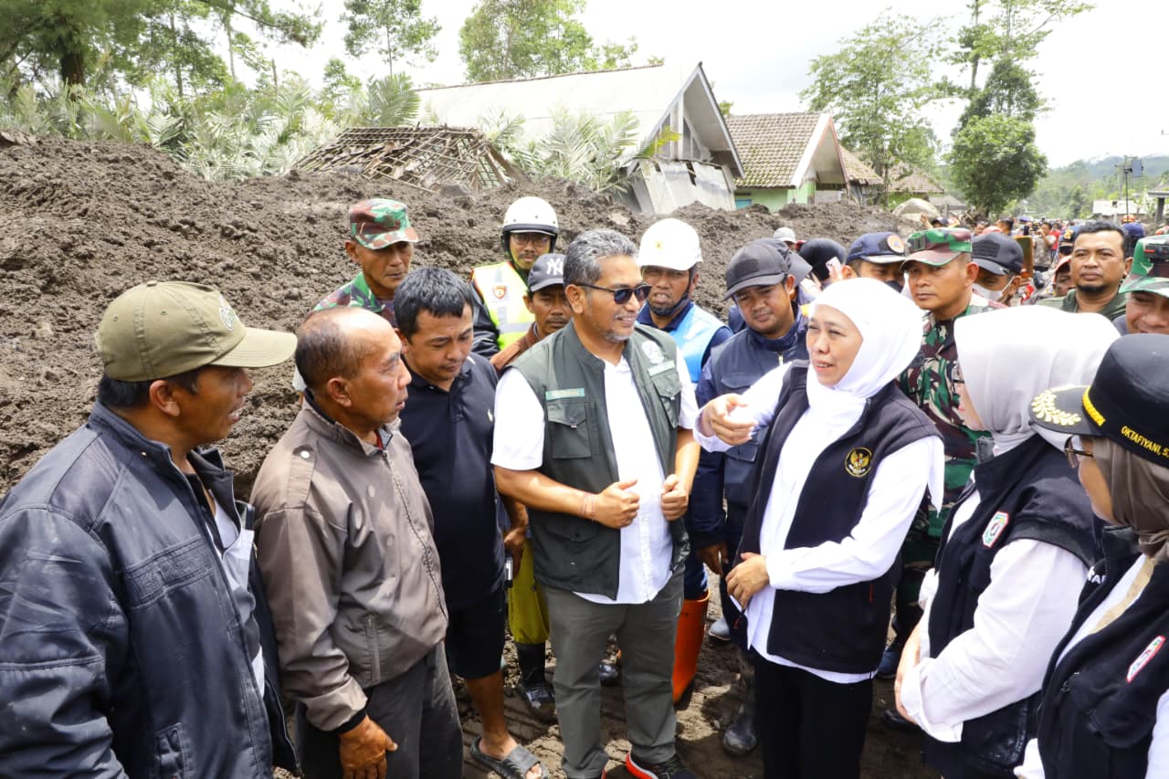 Gubernur Khofifah mendatangi sejumlah lokasi terdampak APG Semeru, mulai titik pengungsian di Kecamatan Pronojiwo, tepatnya di SDN 4 Supiturang, meninjau dengan Dapur Umum, meninjau Desa Sumbersari, serta juga meninjau Jembatan Gladak Perak.