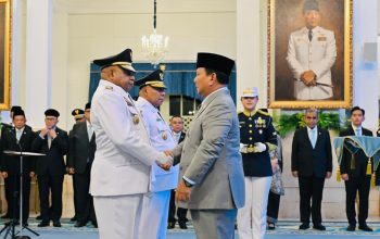 Presiden Prabowo Subianto melantik Kepala dan Wakil Kepala Badan Pengaturan Badan Usaha Milik Negara (BP BUMN) di Istana Negara, Jakarta, Rabu (8/10/2025).